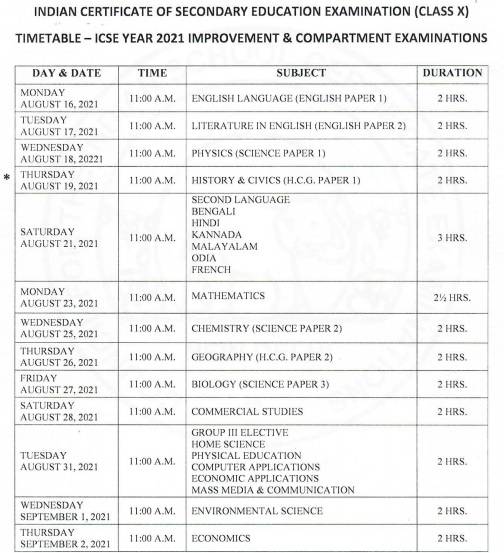 15 rows Get ICSE Class 10th Semester-1 Board Exam Time Table Date Sheet for 2021-22 has. 24 rows The Council for the Indian School Certificate Examinations CISCE has issued. ICSE Class 10 Exam Dates 2021. Date sheet to be announced on 18 October.